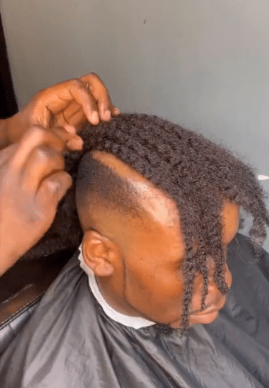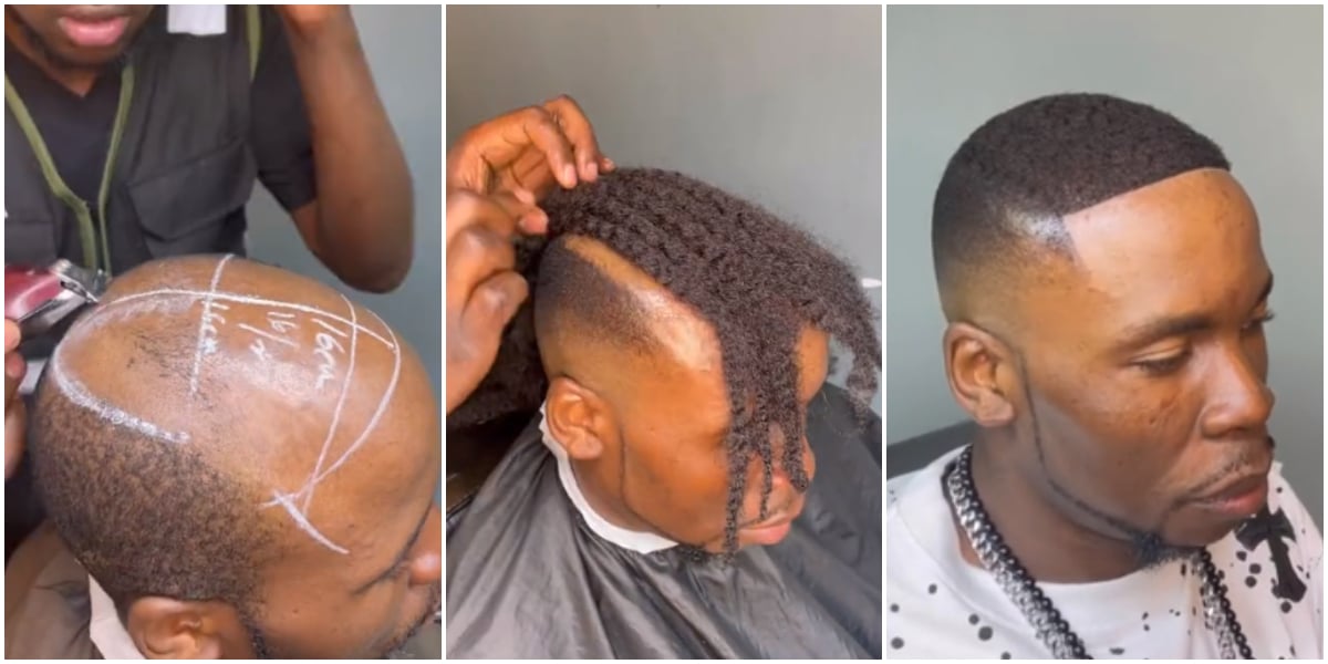 The process, featured in a video shared on the barber’s social media, showcased a man with balding patches seated silently while the barber worked his magic.