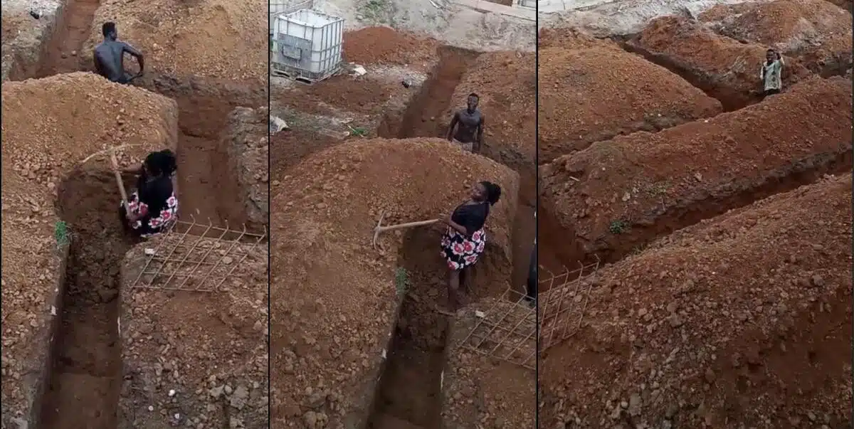 A video making rounds on social media captured a married couple whose source of income depends on digging foundations together.