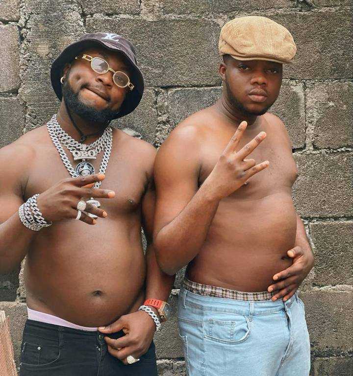 A popular Nigerian comedian, Cute Abiola has left many people amazed after he struck a pose with a young man who bears a striking resemblance to Davido, Nigerian music superstar.
