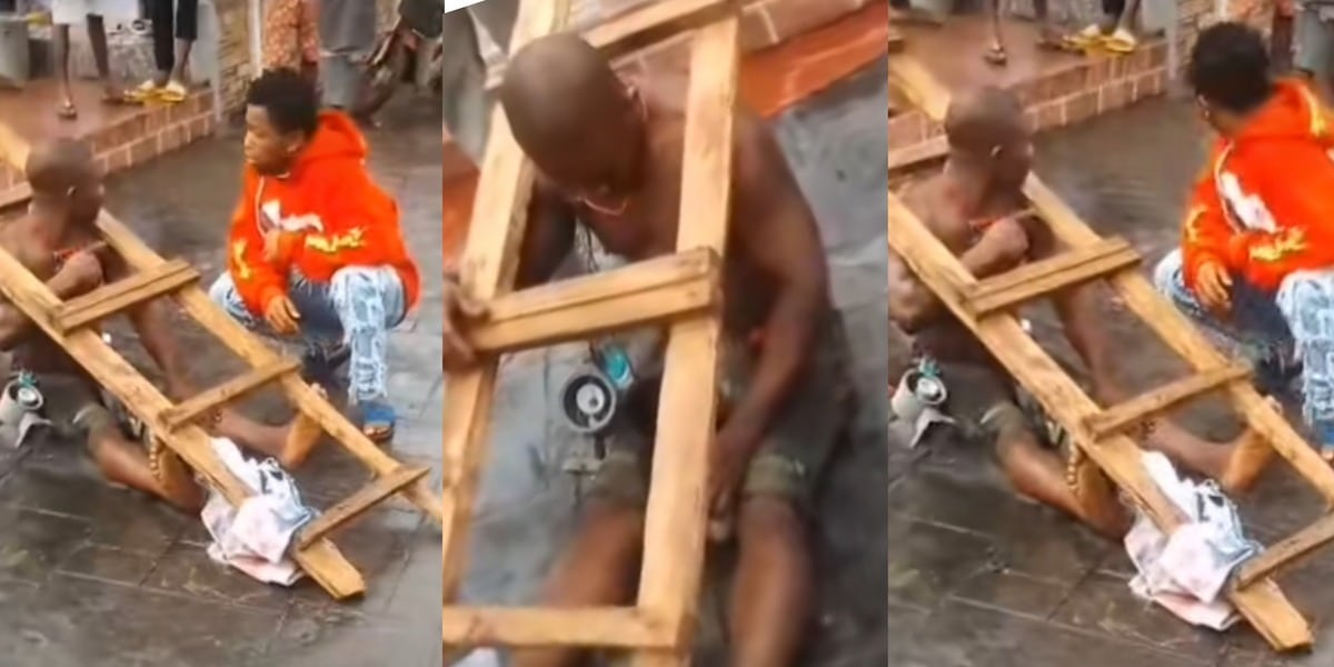 A Nigerian father was openly embarrassed when a ladder was placed on his head after he was caught jumping into someone else’s compound with the aid of a ladder.