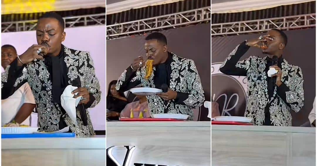 Popular influencer, Enioluwa, has gotten tongues wagging after showcasing his eating skills at a recent event.