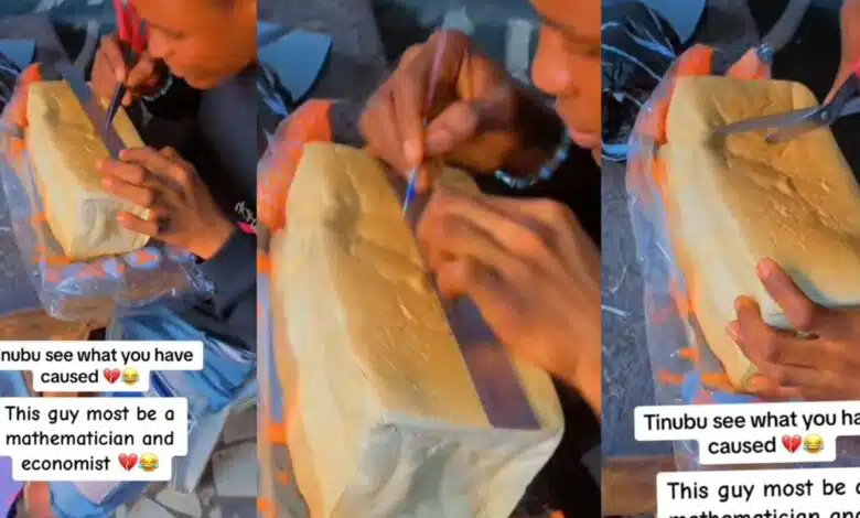 “Tinubu, see what you’ve caused” – Man uses ruler and biro to measure bread (Video)