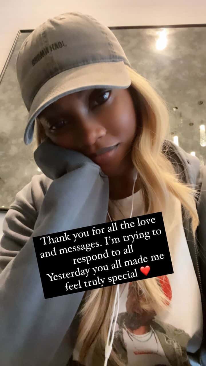 She wrote: “Thank you for all the love and messages. I’m trying to respond to all. Yesterday you all made me feel truly special ❤️”