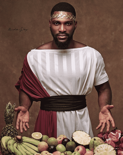 The media personality has taken to his Instagram page to share Egyptian themed photos of himself posing by a basket of fruits.