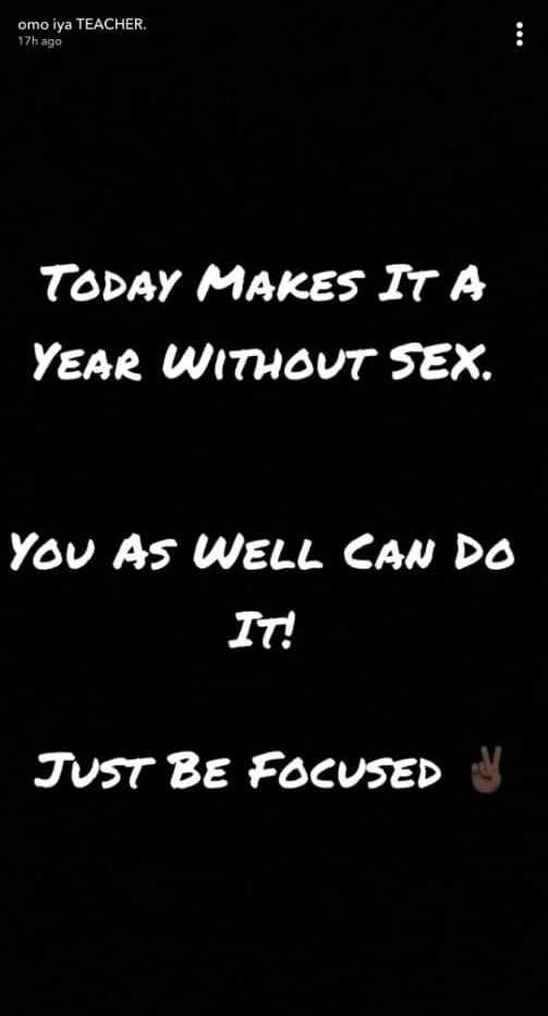 The music artiste took to his social media page to make the declaration of how he didn’t engage in any s3xual activities for a year long.