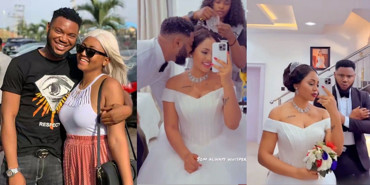 A video of popular movie stars, Regina Daniels and ex-boyfriend, Somadina acting as a wedding couple in a movie has stirred mixed reactions among netizens.