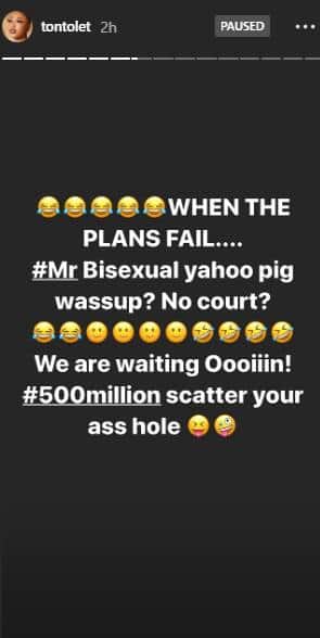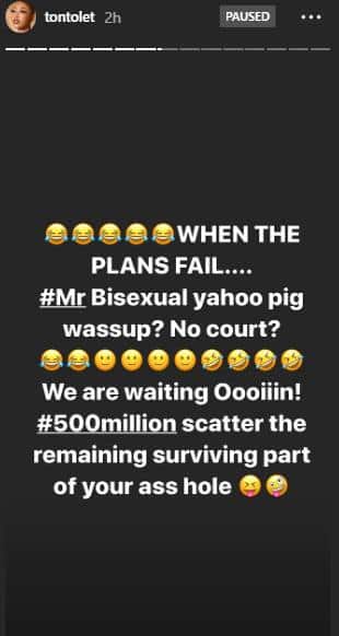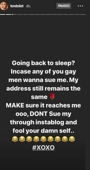 Coming after Churchill denied the allegation his former wife and actress, Tonto Dikeh heaped on him, Tonto has taken to her Instagram story to dare him to sue her if he is truly not bisexual.