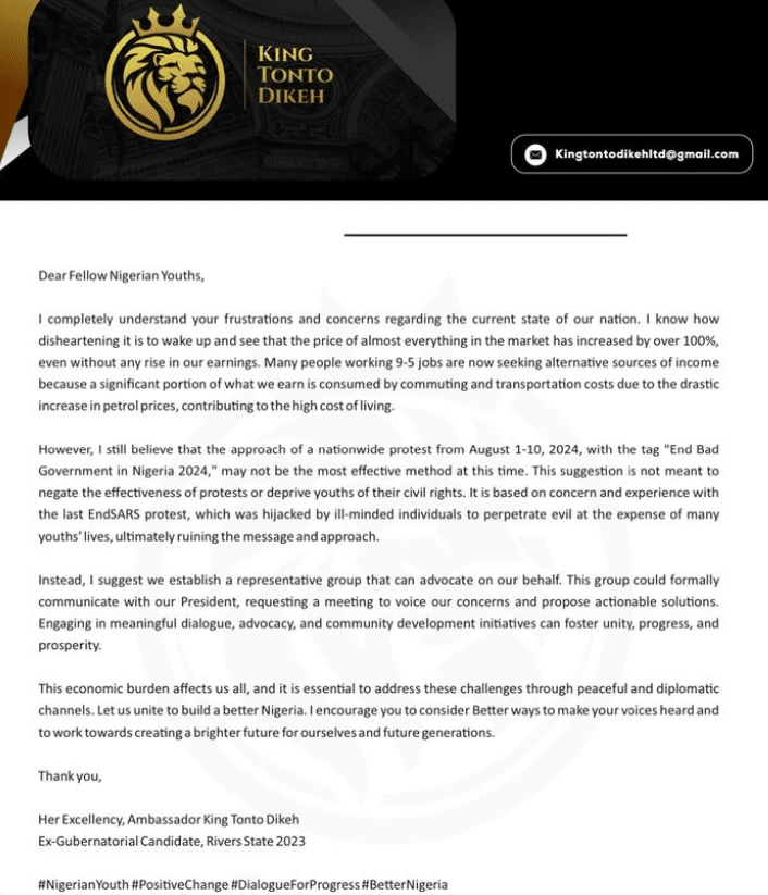 Nollywood actress and politician Tonto Dikeh has sparked a storm of controversy online after urging Nigerians to reconsider their plans for a nationwide protest scheduled from August 1-10, 2024.