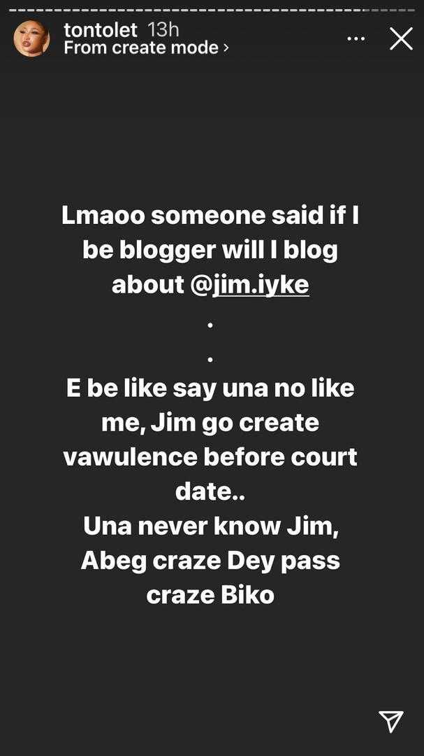 King Tonto, however, made a U-turn when advised to write about the fellow actor, Jim Iyke, who once beat up his colleague, Uche Maduagwu, for making a social media post about him.