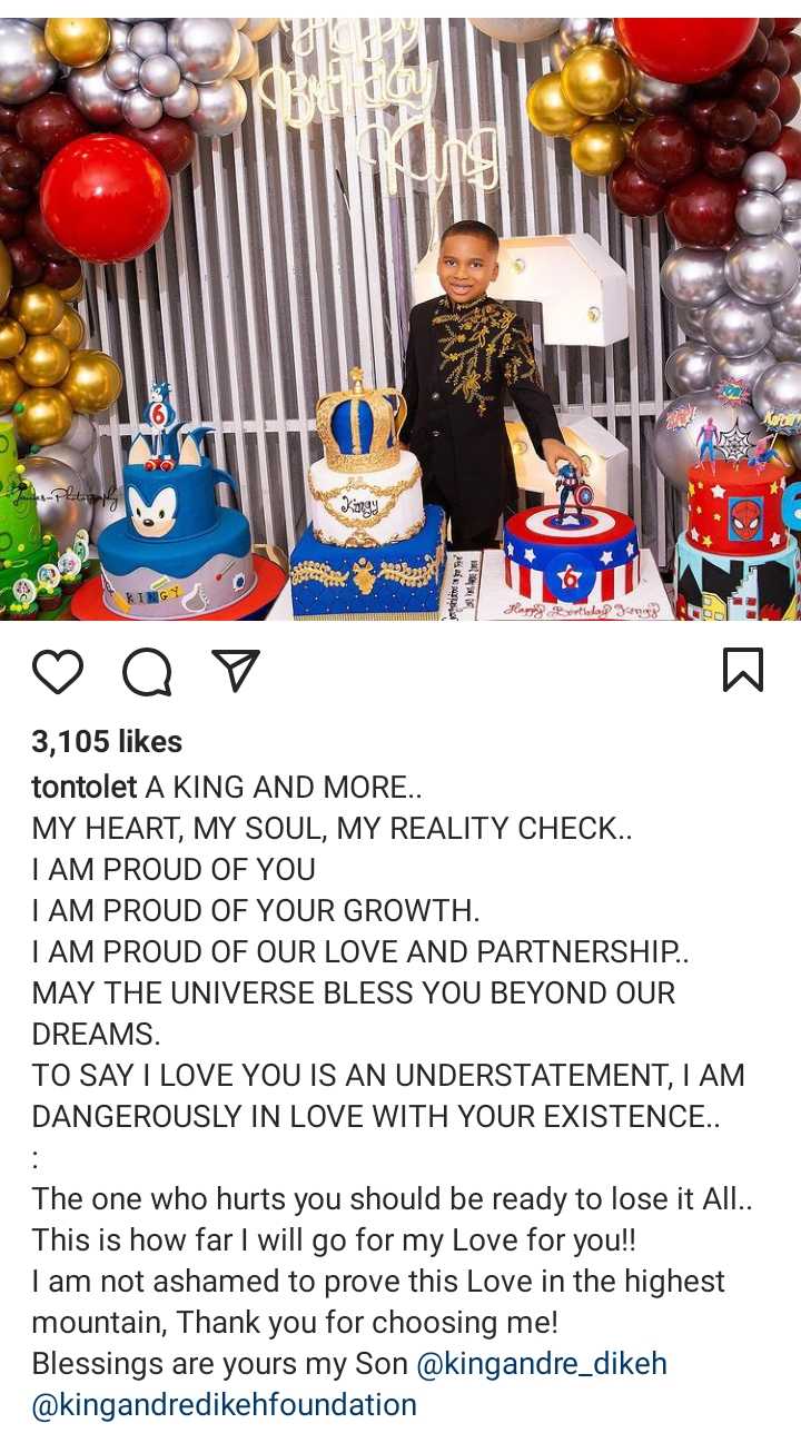 Veteran Nollywood actress, Tonto Dikeh had earlier taken to her social media page to pen down lovely notes to her son, Andre as he celebrates his 6th birthday today. The popular actress has wowed netizens as she got a piece of Scotland’s real estate for her little boy.