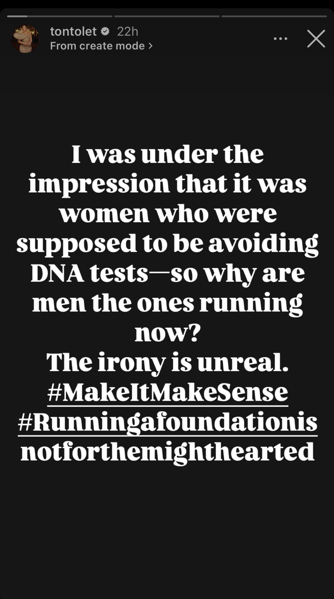 The actress took to her social media page to note how, in the past, it had always been the women running from DNA tests.