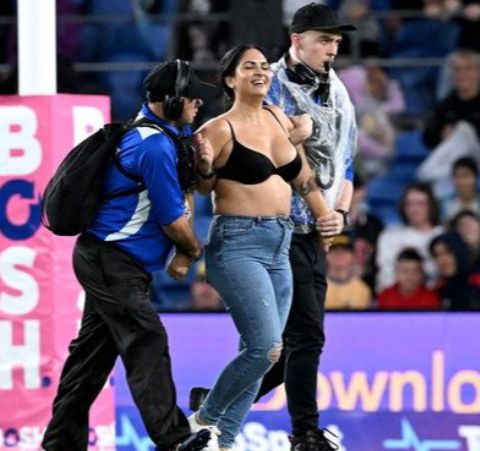 She had interrupted the game between the Gold Coast Titans and the Parramatta Eels on Saturday, April 9th, after stripping down to her bra and storming the pitch.