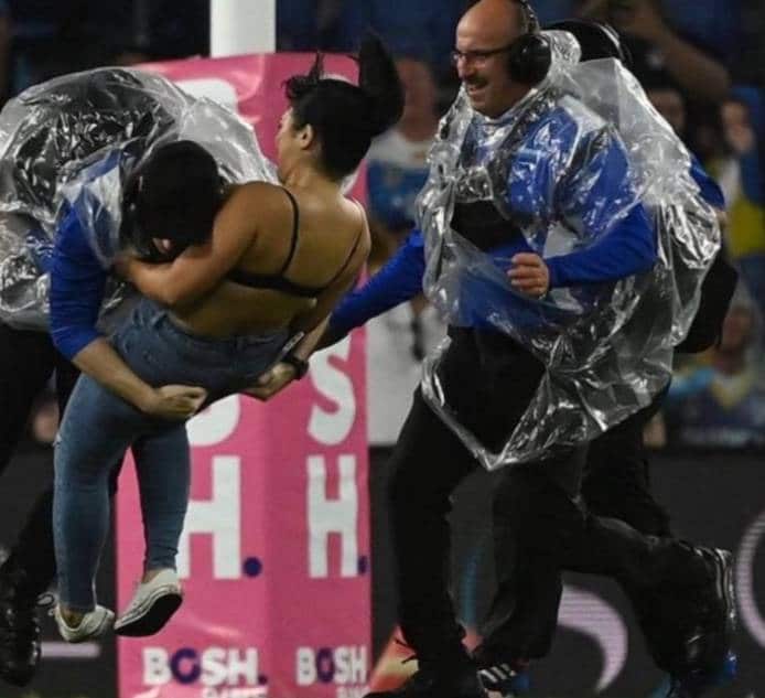 She had interrupted the game between the Gold Coast Titans and the Parramatta Eels on Saturday, April 9th, after stripping down to her bra and storming the pitch.