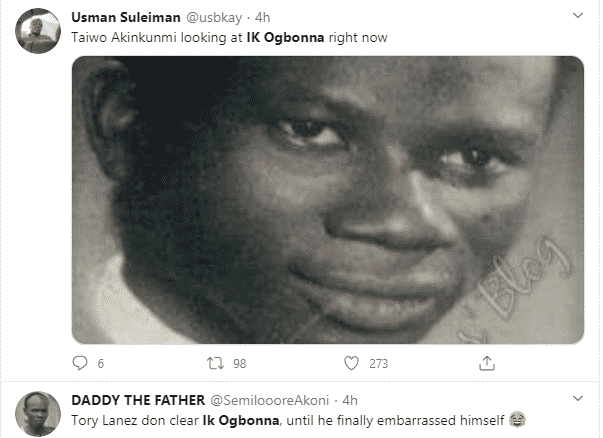 Tory Lanez however noticed IK Ogbonna’s continous action last night and called him out for it.