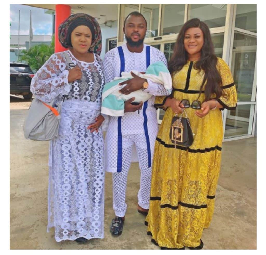 Toyin Abraham and her husband attend first church service with their son, Ire (Photos)