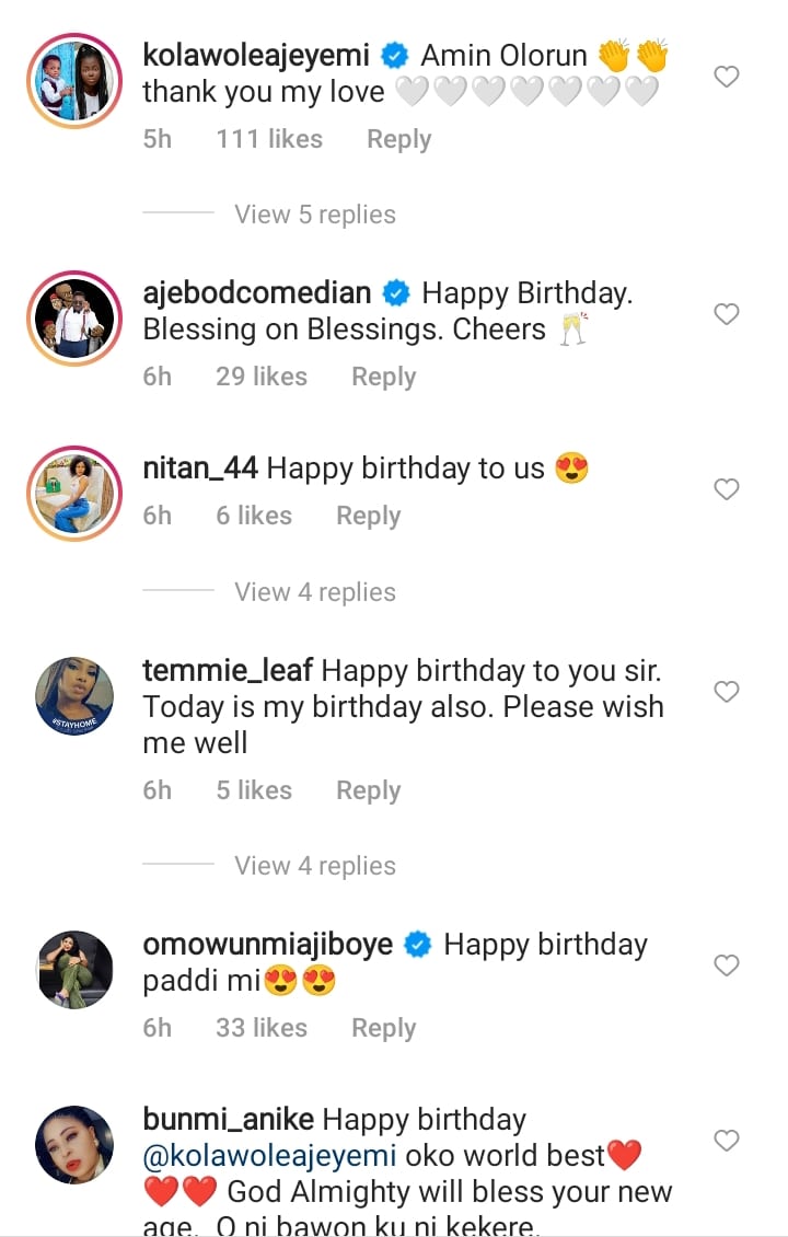 “Happy birthday Oko mi atata. Olowo Ori Mi. Long life Oko mi @kolawaleajeyemi ori ni e o ni di iru lase Olorun”.