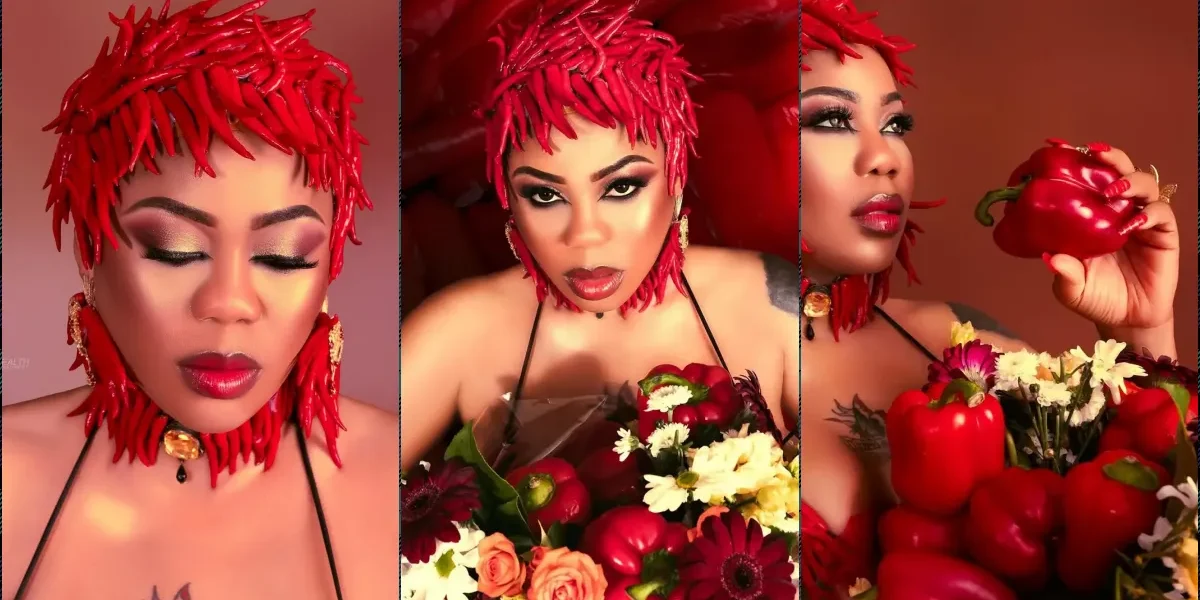 Nigerian celebrity designer, Toyin Lawani has once again pushed creative boundaries as she marked Valentine’s Day with an unconventional outfit inspired by pepper.