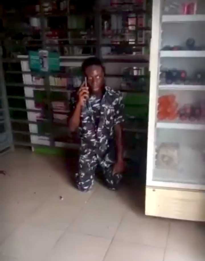 A viral clip online causing a stir captures a police officer taking cover in a close by shop after assailants killed three of his comrades at a roadblock in Enugu.