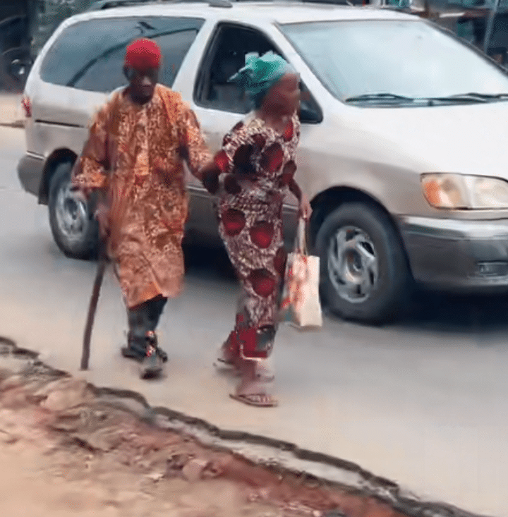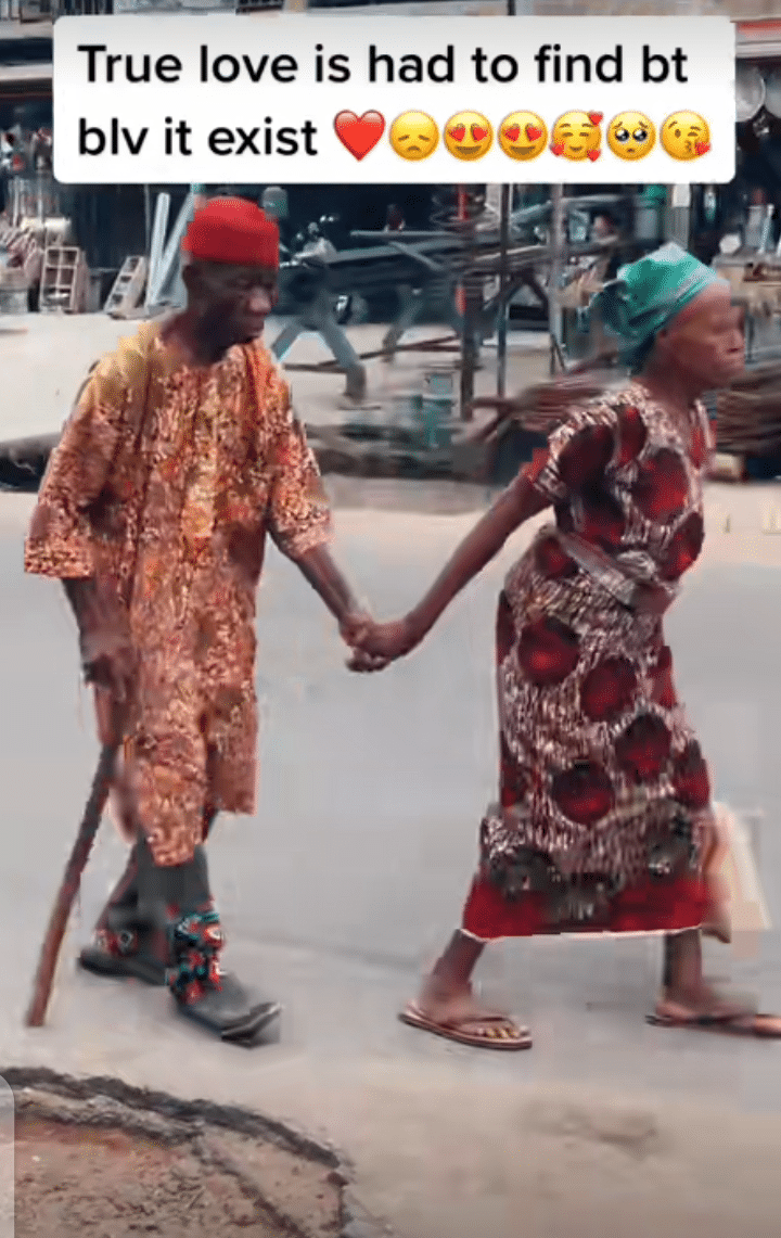 “True love exists” – Cute video of elderly Nigerian couple holding hands on the road melts hearts