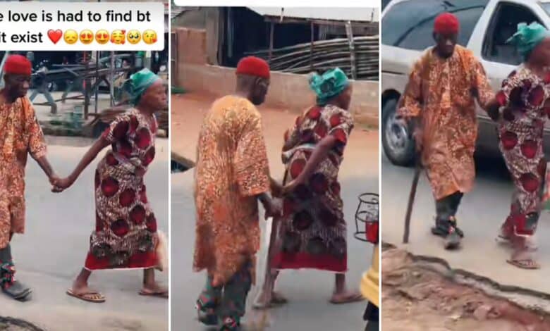 “True love exists” – Cute video of elderly Nigerian couple holding hands on the road melts hearts