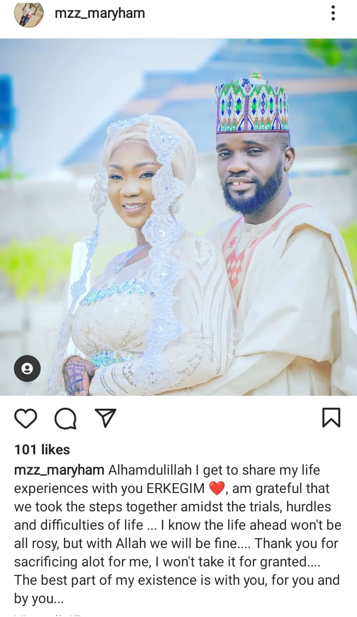 “Alhamdulillah I get to share my life experiences with you ERKEGIM. I am grateful that we took the steps together amidst the trials, hurdles and difficulties of life … I know the life ahead won’t be all rosy, but with Allah we will be fine…. Thank you for sacrificing alot for me, I won’t take it for granted…. The best part of my existence is with you, for you and by you.”
