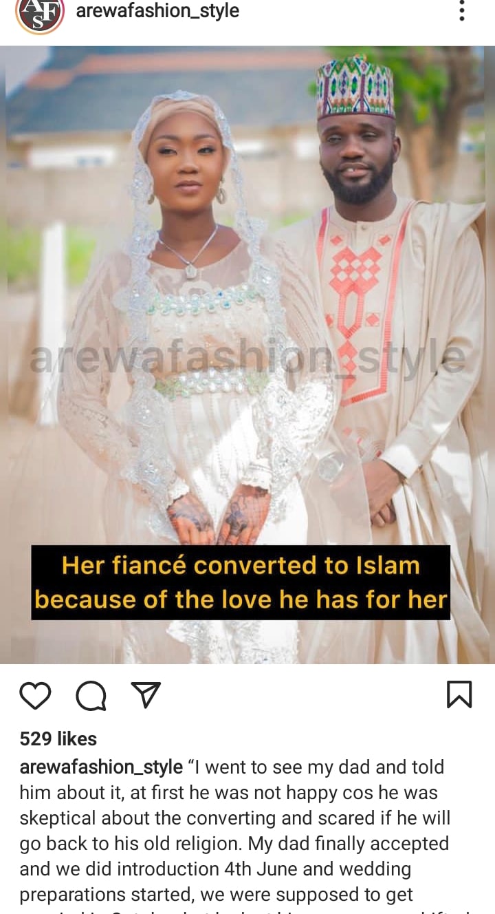 “I went to see my dad and told him about it, at first he was not happy cos he was skeptical about the convertion and scared if he would go back to his old religion. My dad finally accepted and we did an introduction 4th June and wedding preparations started, we were supposed to get married in October but he lost his mum so we shifted the date and Alhamdulillah it came to pass.”