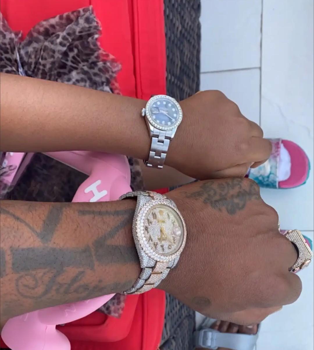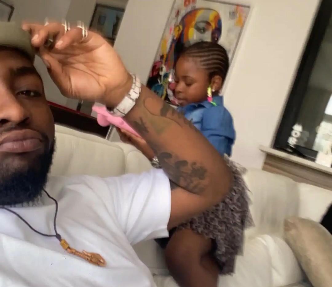 Award winning singer, David Adeleke, professionally known as Davido has shared photos of himself and first daughter, Imade rocking matching wristwatches.