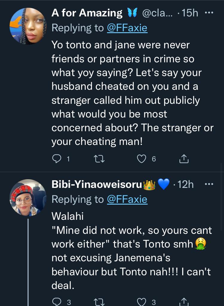 Twitter user slams actress, Tonto Dikeh for exposing Janemena’s affair with Kpokpogri