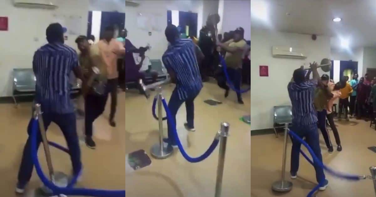 Two men allegedly fight dirty in bank over new Naira notes (Video)