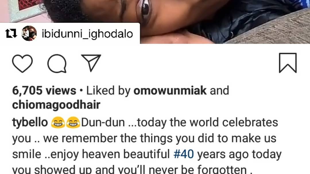 “Dun-dun …today the world celebrates you .. we remember the things you did to make us smile ..enjoy heaven beautiful #40 years ago today you showed up and you’ll never be forgotten.”, Ty Bello captioned the video.