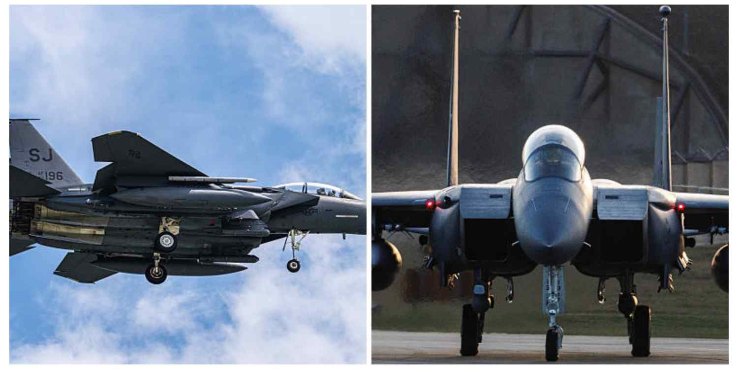 - Zoom in: An F-15E Strike Eagle flies with a pilot and a weapons systems officer. The Boeing-built aircraft are capable of flying both air-to-air and air-to-ground operations.