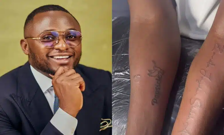 However, Nigerians ridiculed the talent manager for neglecting his own kids and tattooing that of another.