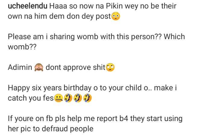 “Haaa so now na Pikin wey no be their own na him dem don dey post. Please am i sharing womb with this person?? Which womb??