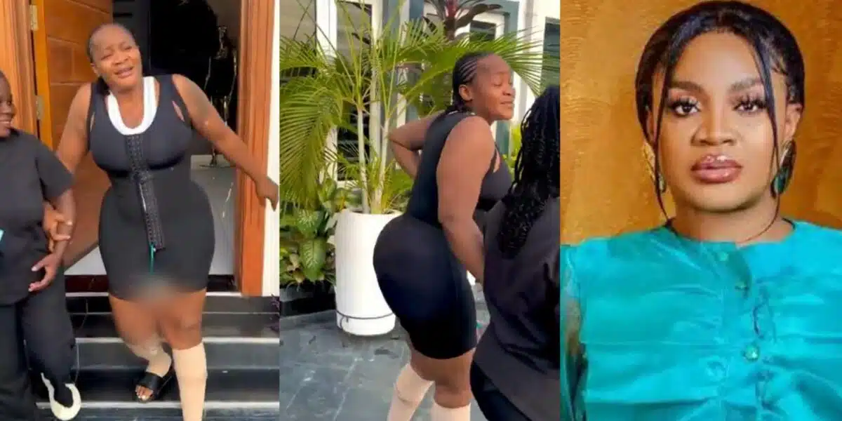 Notable actress, Uche Ogbodo shares a video capturing her recovery phase after undergoing a BBL surgery.
