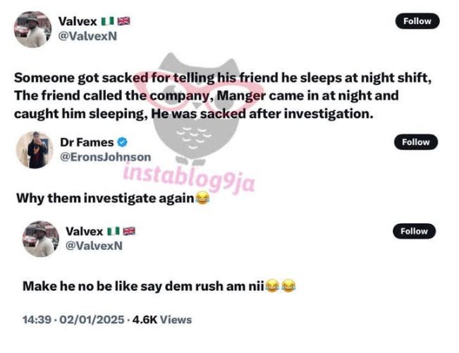 Princebettingtips wrote, “That’s a true friend who wants the growth of the company. You don’t get to sleep on duty. What if it’s a security work or something. If you can’t do a job, don’t accept a job. There’s no sympathy in business.
