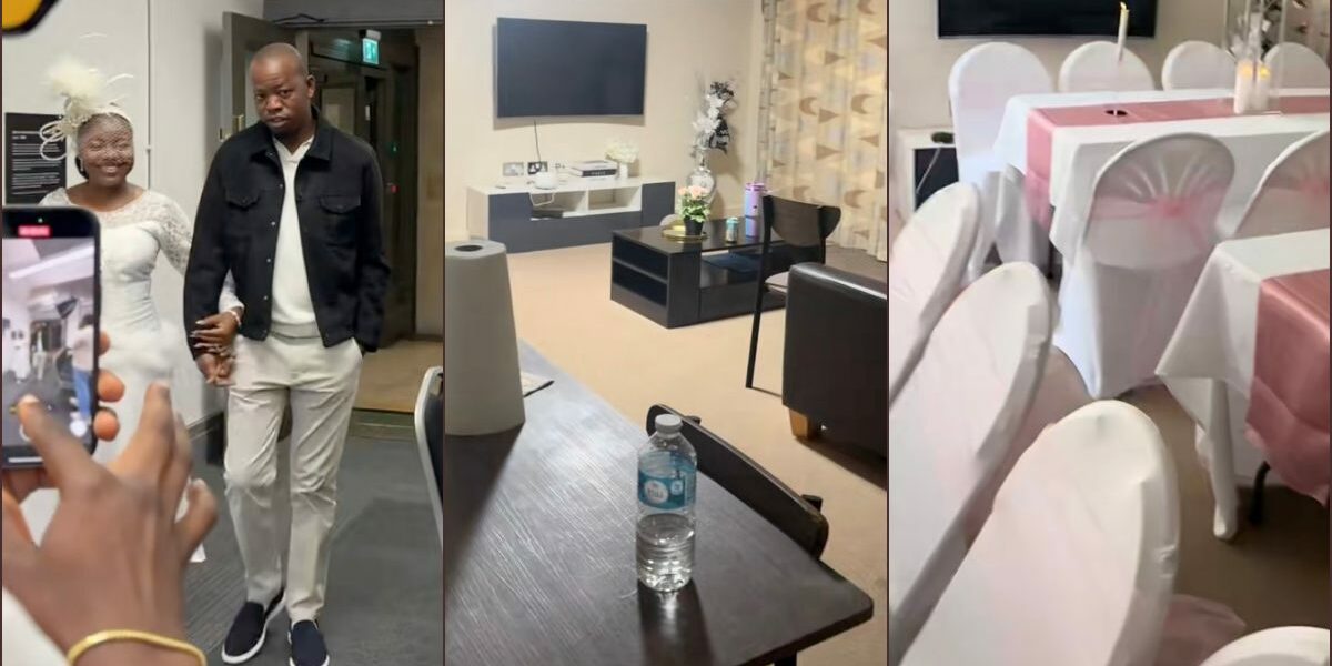 A UK-based Nigerian woman, Abidemi Ariyo, has stirred reactions after beautifully transforming her modest living room into a charming venue for her civil wedding ceremony.