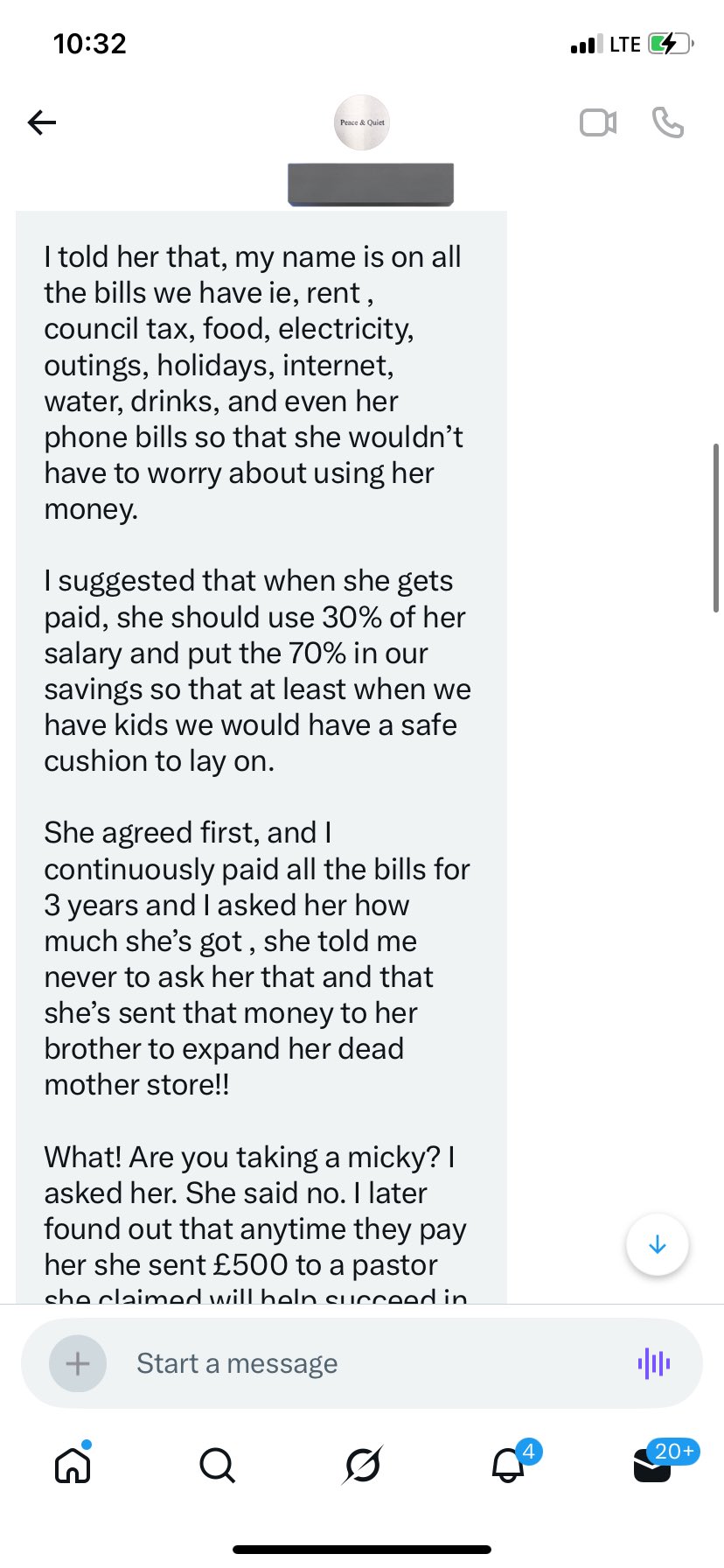 I told her that, my name is on all the bills we have ie, rent, council tax, food, electricity, outings, holidays, internet, water, drinks, and even her phone bills so that she wouldn’t have to worry about using her money.