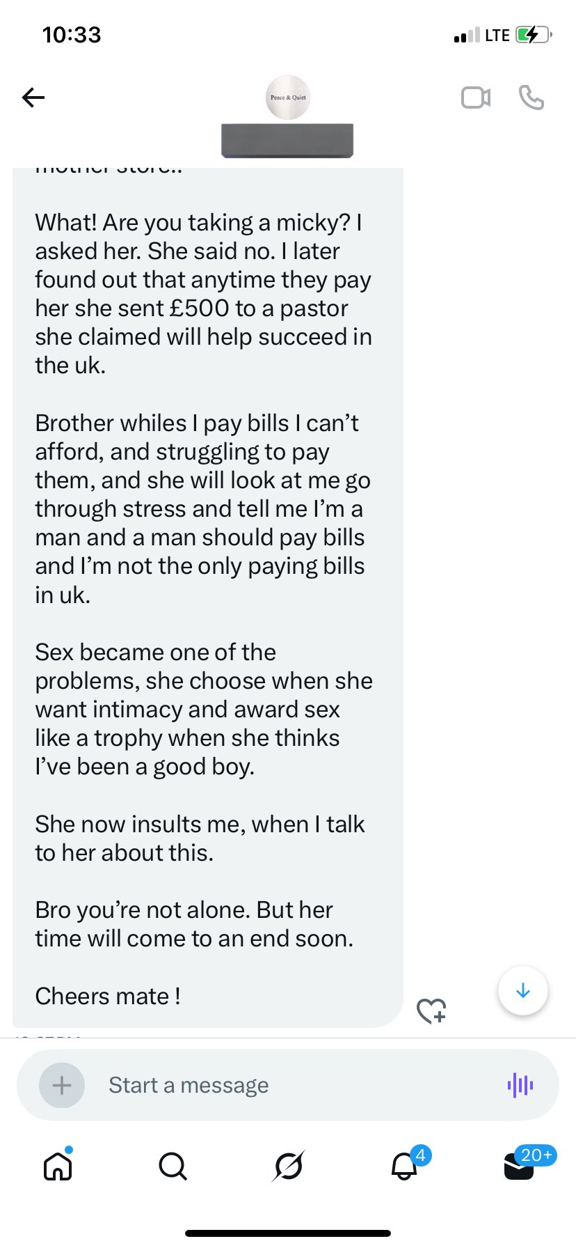 Brother whiles I pay bills I can’t afford, and struggling to pay them, and she will look at me go through stress and tell mel’ma man and a man should pay bills and I’m not the only paying bills in uk.