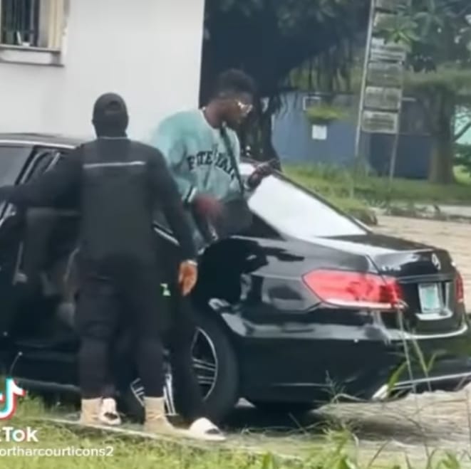 Uniport year 1 student reportedly resumes with Benz and bouncer after ASUU strike (Video)