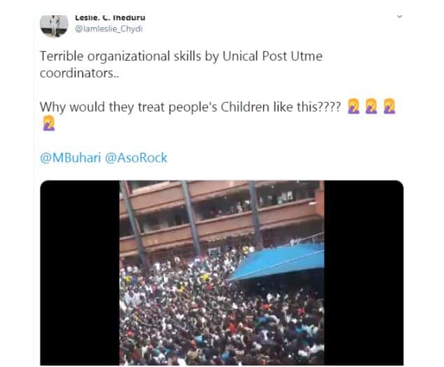 “Terrible organizational skills by Unical Post Utme coordinators.. Why would they treat people’s Children like this????”