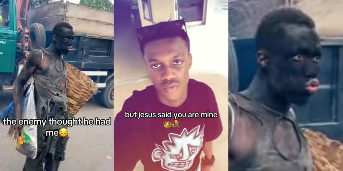 The video, which has been making waves on TikTok, shows the man dressed in tattered, stained clothes, holding a broken wooden basket and nylon bags filled with waste materials.