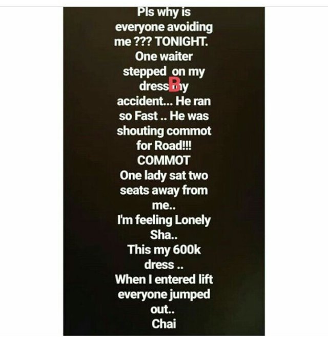 …..and then this.. quick update showed the gown made her lonely after causing commotion.