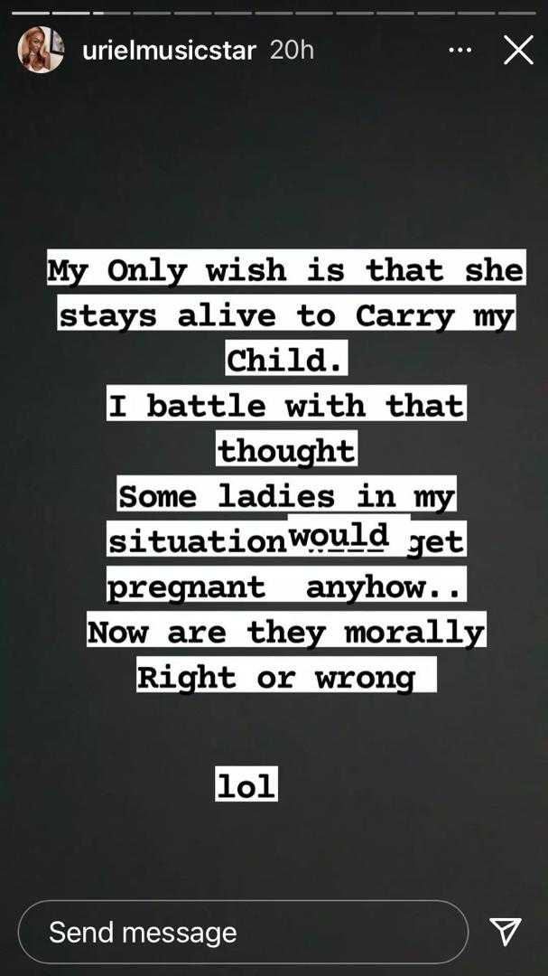 “My only wish is that she stays alive to carry my child. I battle with that thought.