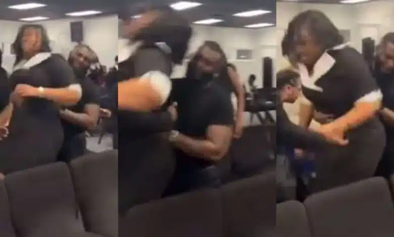An usher stepped in to help a congregant who was visibly moved by the Holy Spirit during a church service, prompting hilarious reactions online.