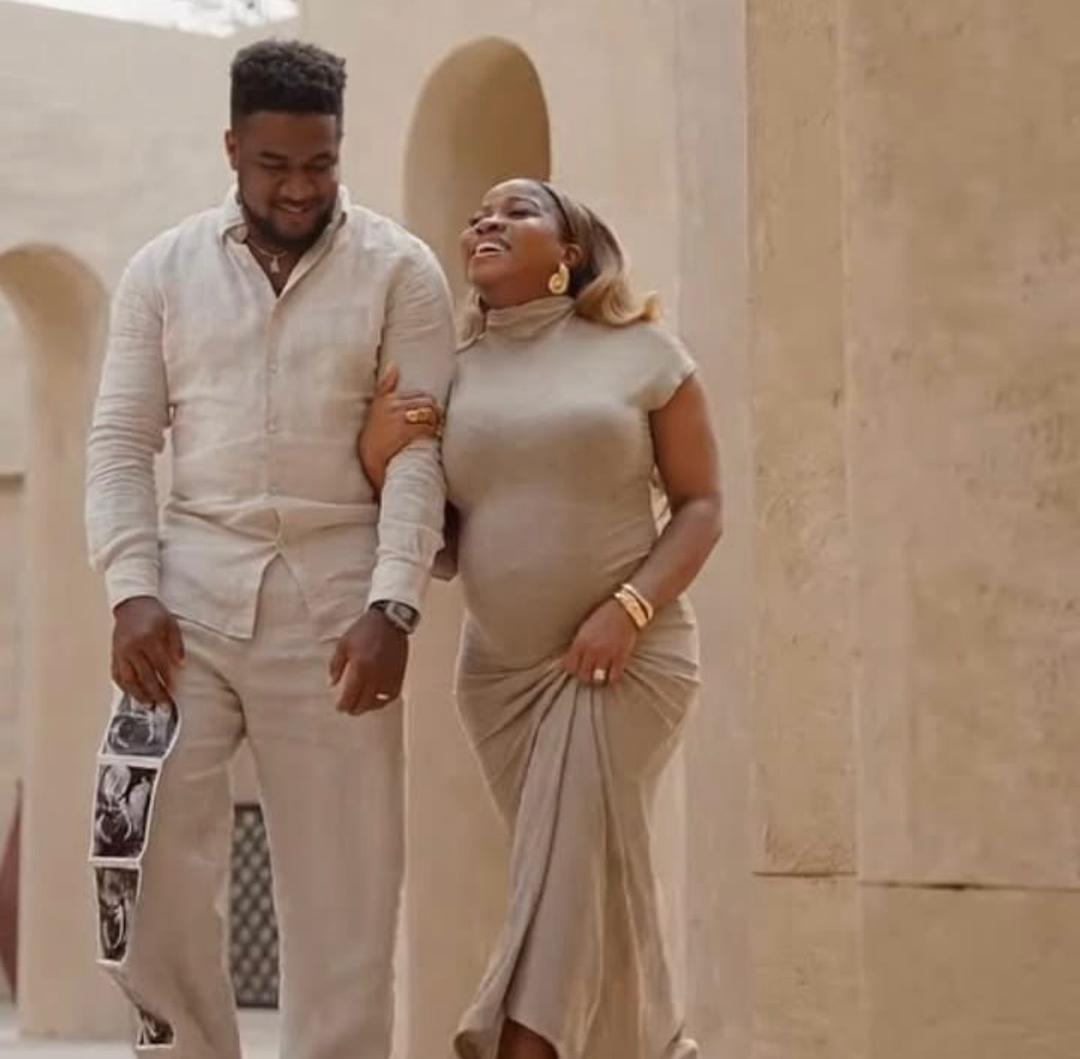 Veekee James announces pregnancy as she flaunts baby bump with husband, Femi Atere