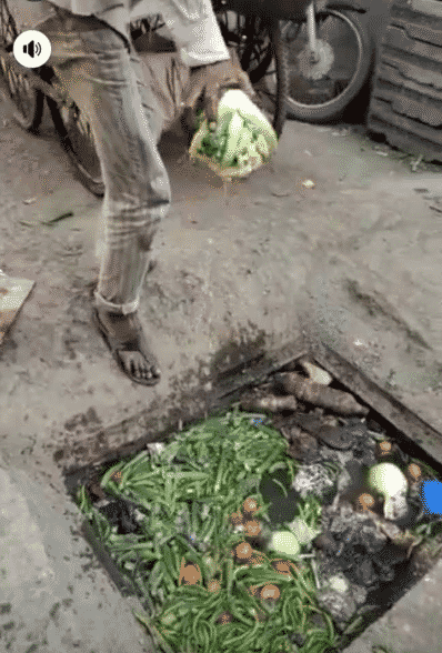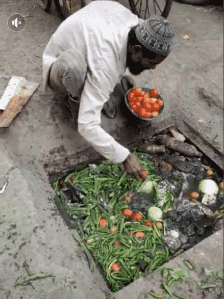 Photos of a vegetable seller picking his wares from a dirty drainage to sell to unsuspecting buyers has emerged on Twitter.