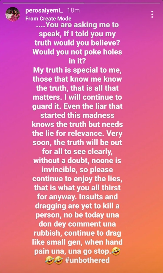 She stated this in an Instagram post where she threw shades at a certain liar while promising to make the truth come out.