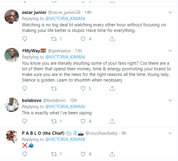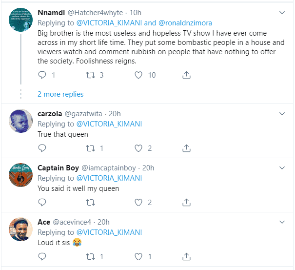 Nigerians are attacking Victoria Kimani for saying Big Brother Naija reality TV show keeps people ‘dormant, distracted & jobless.’