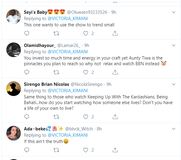 The Kenyan singer took to her Twitter page to criticise the reality show and those who watch it, stressing that fans of the reality show should have invested that same amount of time building their businesses instead of watching other people’s lives.