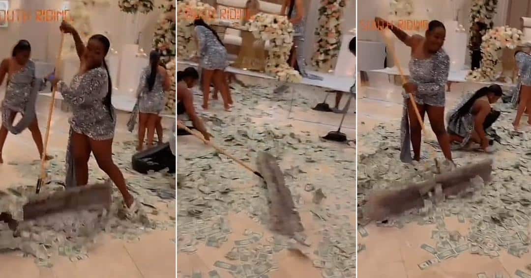 Video of bridesmaids sweeping huge cash sprayed at wedding takes internet by storm